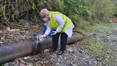 De data aceasta, traseul dumneaei a avut și un punct special de colectare, pentru a răspunde moftului nostru reportericesc de a face o analiză comparativă a unei mostre de apă de la robinet, cu o mostră de apă dintr-un râu de munte, iar pentru acest caz am ales să prelevăm și o mostră de apă din râul Brăița, pe cursul superior al acesteia, în pădure, aproape de barajul de captare situat mai sus de zona de agrement cu același nume din Lupeni.