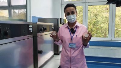 ”Acest laborator este unul ce funcționează după reguli extrem de stricte, într-un mediu steril și cu un circuit cu sens unic. Beneficiind de echipamente de specialitate și aparate de analiză de ultimă generație și de reactivi certificați, de înaltă calitate, probele sunt supuse unui set de analize privind detecția și numărul de bacterii coliforme, detecția și numărarea enterococilor intestinali și germenii la 22 și 27 de grade. În urma celor constatate emitem buletinul de analiză microbiologică, după care instrumentarul de lucru este din nou sterilizat. Important de precizat este că tot acest procedeu este unul care se desfășoară în condiții de siguranță maximă, fără risc de contaminare pentru laborant sau mediu”, explică Mariana Gângu.