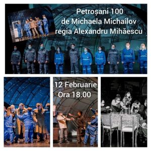 „Petroșani 100”, un spectacol eveniment al stagiunii precedente a Teatrului ”I. D. Sîrbu” din Petroșani, va avea o nouă reprezentație pe scena teatrului din Valea Jiului, sâmbătă, 12 Februarie 2022, de la ora 18.00.