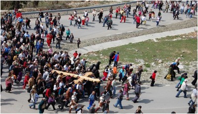Drumul crucii, urmat de credincioșii din Lupeni de 23 de ani, în Vinerea Mare, pe Golgota de la Straja