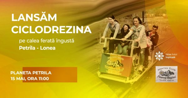 Astfel, duminică, 15 mai 2022, de la ora 13,30 se pune în mișcare, oficial, prima ciclodrezină turistică din Valea Jiului. Aceasta va circula pe linia ferată îngustă, pe traseul cuprins între fosta Exploatare Minieră Petrila și actuala Mină Lonea. Evenimentul este precedat, pentru cei interesați, de un tur ghidat în perimetrul ”Ansamblului istoric Mina Petrila”, oferit de voluntarii Asociației ”Planeta Petrila” (de la ora 11,00), respectiv de o dezbatere având ca subiect potențialul turistic în Valea Jiului și valorificarea patrimoniului industrial al regiunii după închiderea activităților din minerit (de la ora 12,00).