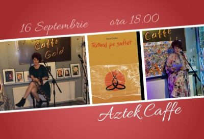 Cafeneaua artelor ”Aztek Caffe” din centrul municipiului Petroșani găzduiește astăzi, de la ora 18,00 un eveniment cultural de excepție. Acesta este prilejuit de lansarea noului volum de versuri al poetei Anca Ciolca, dublat de acordurile de pian ale maestrului Aurelian Epuraș și de un concert folk al Claudiei Șponor care include compoziții în primă-audiție ale acesteia chiar pe versurile Ancăi Ciolca.