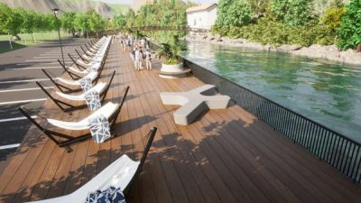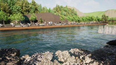 – Zona de agrement – aici se va amenaja lacul artificial in suprafață de 5000 mp, se vor monta pontoane de jur imprejurul lacului; se va construi un spațiu de relaxare dotat cu mobilier specific;