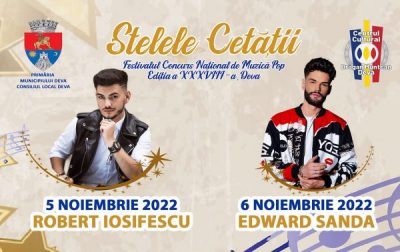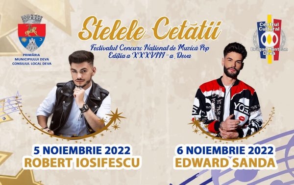 Primăria Municipiului Deva și Centrul Cultural „Drăgan Muntean” Deva organizează în zilele de 5 și 6 noiembrie 2022, în Sala Mare a Centrului Cultural „Drăgan Muntean”, cea de-a XXXIX-a ediție a Festivalului Concurs Național de Muzică Pop „Stelele Cetății”.