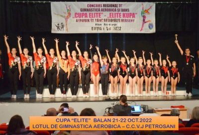 Consemnăm totodată faptul că, în perioada 21-22 octombrie 2022, lotul de gimnastică aerobică de la Clubul Copiilor Valea Jiului – sediul central Petroșani, coordonat de maestrul antrenor profesor Adriana Popa, a participat la Concursul national de gimnastică aerobică „CUPA ELITE”, desfășurat în localitate Bălan din județul Harghita. Și aici, gimnastele din Valea Jiului au avut o evoluție sub semnul performanței, concurând la toate categoriile și probele de concurs, adjudecându-și nu mai puțin de 13 locuri I și alte două locuri II.