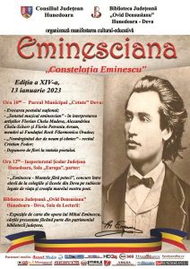 Și în acest mijloc de ianuarie, Biblioteca Județeană „Ovid Densusianu” Hunedoara – Deva organizează, cu sprijinul Consiliului Județean Hunedoara și în parteneriat cu colegiile și liceele devene, o manifestare cultural-educativă prin care cinstește memoria lui Mihai Eminescu în preajma zilei sale de naștere, devenită ”Ziua Culturii Naționale.”