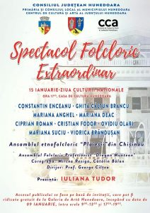 Primăria municipiului Hunedoara și Consiliul județean Hunedoara, care au fost parteneri și în proiectul pentru reabilitatea Casei de Cultură de la Hunedoara, au pregătit împreună, cu sprijinul Centrului de Cultură și Artă al județului Hunedoara, un spectacol folcloric de gală, pentru a marca redeschiderea acestui obiectiv cultural de excepție. Astfel, în data de 15 ianuarie 2023, care marchează Ziua Culturii Naționale, iubitorii de folclor din municipiul Hunedoara și de pe cuprinsul întregului județ, sunt invitați să participe la spectacolul folcloric prezentat de Iuliana Tudor (apreciat prezentator de emisiuni folclorice de la TVR), spectacol în care vor urca pe scenă artiști renumiți precum: Constantin Enceanu, Ghiță Călțum Brancu, Mariana Anghel, Mariana Deac, Cipărianj Roman, Cristian Fodor, Ovidiu Olari, Mariana Suciu și Viorica Brândușan. Invitat special este Ansamblul etnofolcloric „Plăieșii” din Chișinău (Republica Moldova). Acompaniamentul orhestral va fi asigurat de Ansamblul folcloric profesionist ”Drăgan Muntean”, dirijor: prof. George Cîlțea, iar coregrafia spectacolului este realizată de Mircea Resiga și Cătălin Bălan.