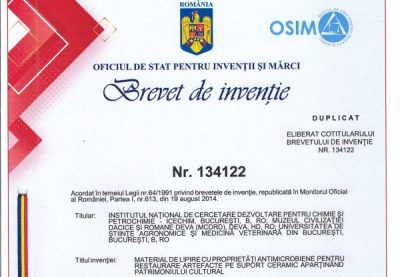 Experții restauratori Ioana Popițiu și Mihaela Beceanu din cadrul Muzeului Civilizației Dacice și Romane din județul Hunedoara au făcut parte dintr-o echipă de cercetători care au reușit să sintetizeze un material de lipire invovator, pe bază de alcool polivinilic și hidroxiapatită cu proprietăți antimicrobiene, al cărui drept exclusiv de exploatare în cadrul unor activități de restaurare s-a realizat prin obținerea unui brevet de invenție.