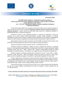 În data de 26 ianuarie 2023 are loc recepția la terminarea lucrărilor pentru lucrările executate în cadrul contractului de lucrări Lot 1: VJ-CL-07 „Reabilitarea rețelelor de apă și canalizare Aninoasa și a aducțiunii Morișoara”, contract semnat între APA SERV VALEA JIULUI SA, în calitate de beneficiar și METALPROD WEST SRL, în calitate de antreprenor.