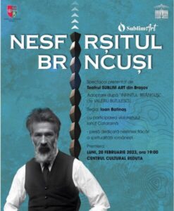 Piesă de teatru scrisă de dramaturgul Valeriu Butulescu în semn de omagiu față de marele sculptor român Constantin Brâncuși, ”Infinitul Brâncuși” va avea o nouă premieră. De data aceasta, piesa va fi jucată la Brașov luni, 20 februarie 2023, fiind pusă în scenă de Teatrul Sublim Art din Brașov, sub bagheta regizorală a lui Ioan Batinaș.