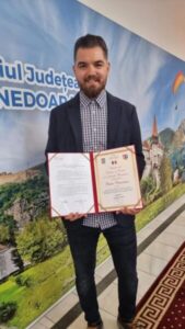 Titlul i-a fost decernat în deschiderea ședinței de vineri, 24 februarie 2023 a forului legislativ județean, în cadrul unei scurte ceremonii în care sportivul a fost aplaudat la scenă deschisă de consilierii județeni, care au votat în unanimitate proiectul de hotărâre inițiat de președintele CJH, Laurențiu Nistor, prin care i-a fost conferită aceastî distincție.