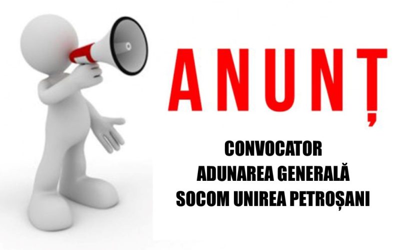 Anunț convocator Adunare Generală Socom Unirea Petroșani