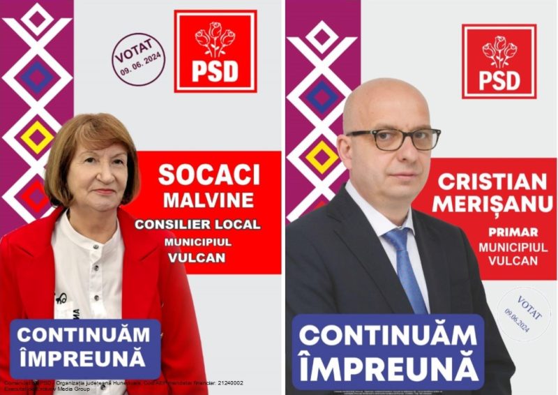 Cu toate aceste argumente în spate, la care se mai pot adăuga încă multe alte elemente pozitive relevante, candidatul PSD pentru un nou mandat de primar al municipiului Vulcan, Cristian Merișanu își dorește să continue activitatea în fruntea administrației publice locale în același parteneriat cu prof. Malvine Socaci, în calitate de viceprimar.