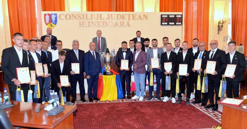 Distincțiile, acordate la propunerea președintelui CHJ, vin în mod firesc odată cu performanța fantastică a fotbaliștilor hunedoreni care au dus această echipă de fotbal reprezentativă a județului Hunedoara din Liga a II-a direct în Cupele Europene, după uluitoarea performanță a câștigării Cupei României la fotbal.