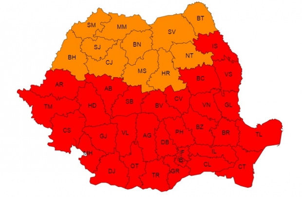 Administrația Națională de Meteorologie a emis o avertizate meteo COD ROȘU de caniculă, valabil pe aproape întreg cuprinsul României, în următoarele 3 zile.