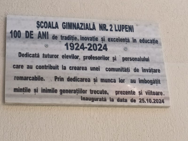 Foști și actuali dascăli, foști și actuali elevi dar și o seamă de invitați de onoare au marcat împreună, cu bucurie și emoție deopotrivă, sărbătoarea Centenarului Școlii gimnaziale nr. 2 Lupeni, una dintre școlile cu tradiție în învățământul din Valea Jiului.
