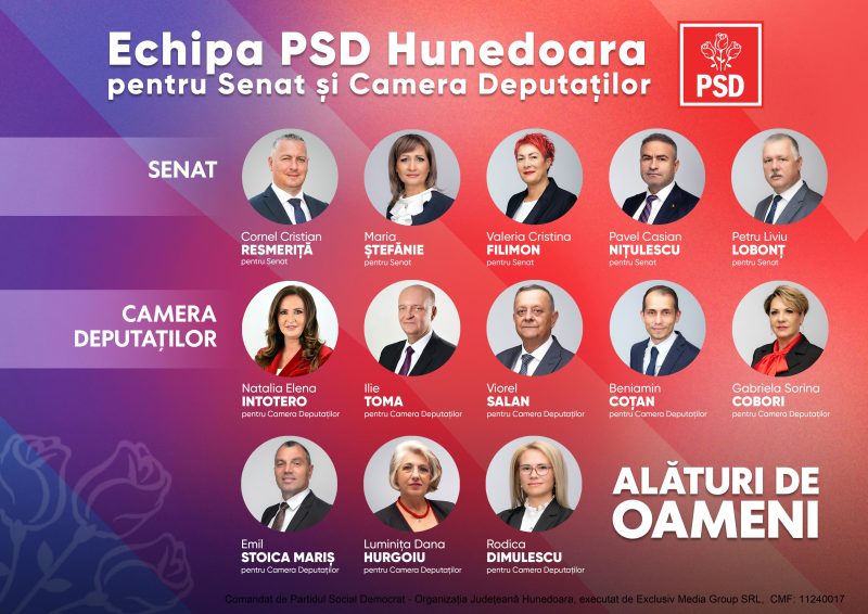 Comandat de Partidul Social Democrat – Organizația Județeană Hunedoara, executat de Exclusiv Media Group SRL, CMF: 11240017