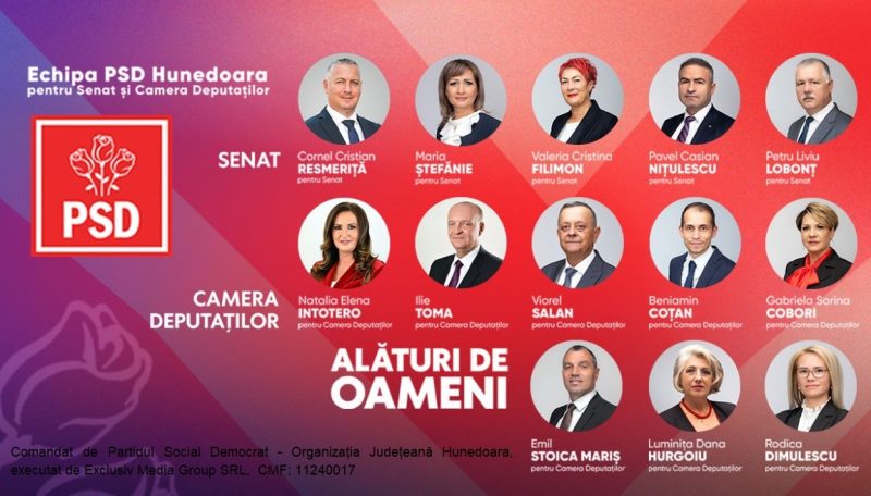 Comandat de Partidul Social Democrat – Organizația Județeană Hunedoara, executat de Exclusiv Media Group SRL, CMF: 11240017