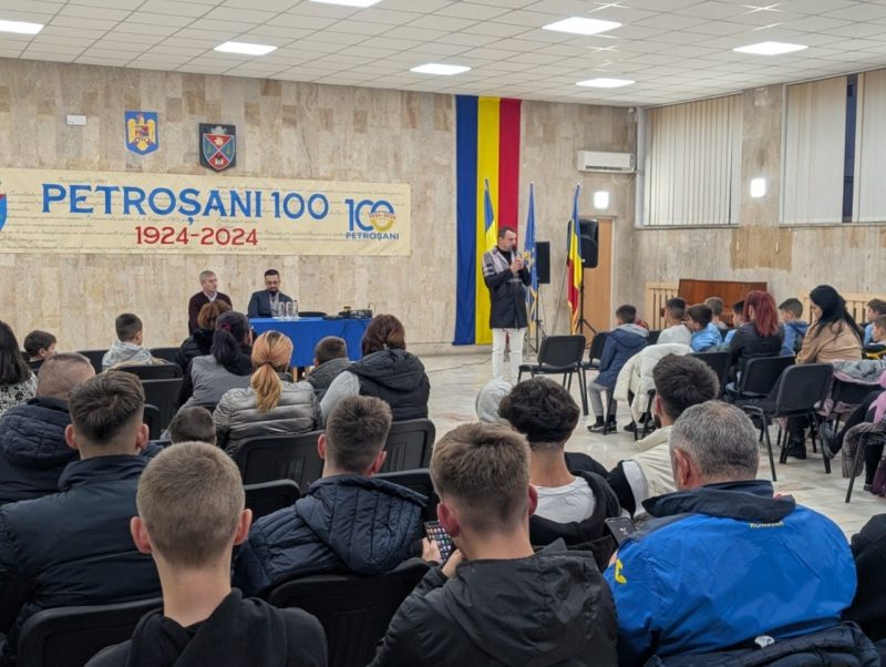 Zeci de copii care se pregătesc pentru fotbal în cadrul acestor apreciate cluburi sportive din Valea Jiului și-au dat întâlnire la Sala de Marmură a Primăriei municipiului Petroșani, pentru a lua parte la seminerul de nutriție intitulat „Alimentație pentru Sportivi.” La eveniment au participat atât sportivi, cât și părinții acestora, interesați să afle mai multe despre importanța unei alimentații corecte și echilibrate pentru performanțele sportive.