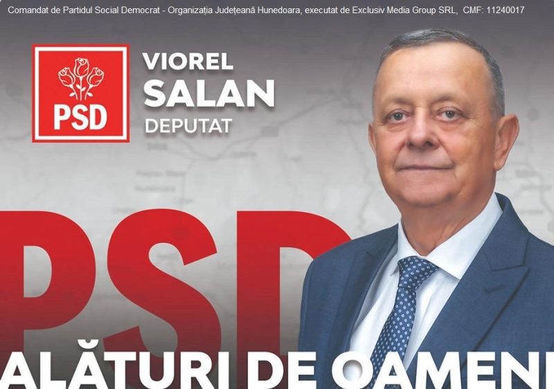 Comandat de Partidul Social Democrat – Organizația Județeană Hunedoara, executat de Exclusiv Media Group SRL,  CMF: 11240017
