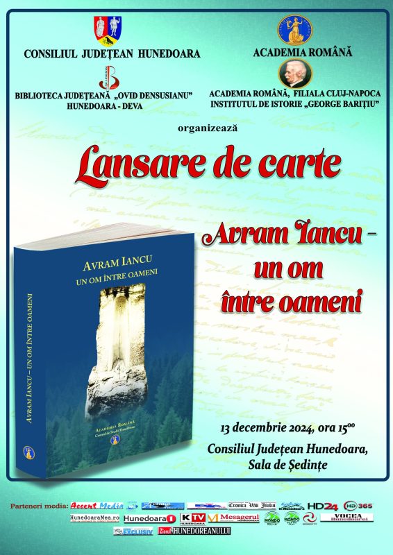 Desigur, cartea ,,Avram Iancu – un om între oameni” urmează să fie lansată oficial și în cadrul unei activități derulate în județul Hunedoara, la Deva. Evenimentul este programat să se desfășoare în ziua de 13 decembrie 2024, ora 15:00, în Sala de Ședințe a Consiliului Județean Hunedoara, în organizarea Bibliotecii Județene „Ovid Densusianu” Hunedora – Deva, cu sprijinul Consiliului Județean Hunedoara și în parteneriat cu Academia Română și Institutul de Istorie „George Barițiu” din Cluj-Napoca.