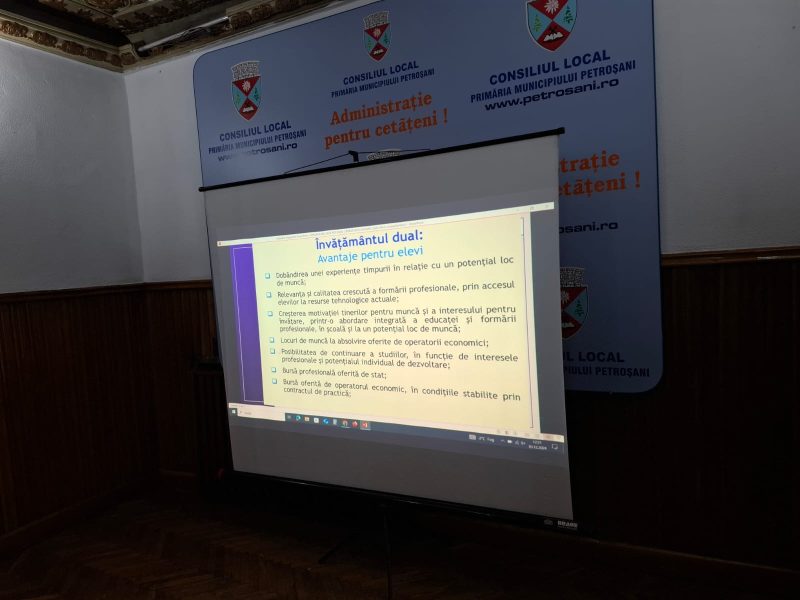 Datorită faptului că în această perioadă, potrivit Calendarului aprobat prin OME nr.7436 din 2024, se stabilește cifra de școlarizare pentru învățământul profesional și dual, la Primăria Municipiului Petroșani a avut loc, în aceste zile, o masă rotundă la care au participat reprezentați ai agenților economici interesați de această formă de educație, directori ai Liceului Tehnologic „Dimitrie Leonida ”Petroșani , Colegiului Economic „Hermes” și Colegiului Tehnic „Constantin Brâncuși” Petrila, reprezentanți ai Primăriei municipiului Petroșani și ai Primăriei orașului Petrila precum și reprezentanți ai Inspectoratului Școlar Județean Hunedoara, întâlnirea fiind moderată de doamna Dana Luiza Cioară, inspector școlar pentru învățământul profesional și tehnic.