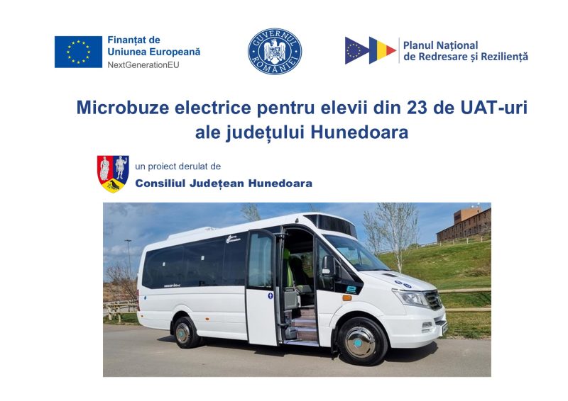 Proiectul „Transport Verde – Microbuze Electrice pentru Elevi în Județul Hunedoara” se derulează între 20 septembrie 2023 și 30 septembrie 2025.