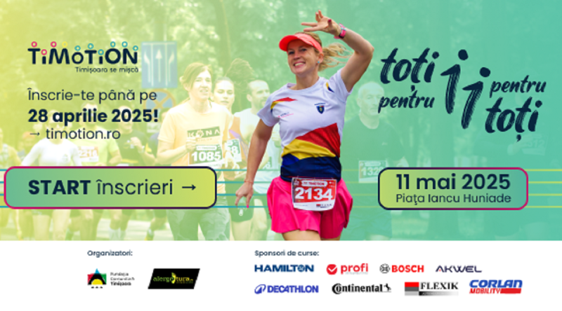 Fundația Comunitară Timișoara și Clubul Sportiv Alergotura, co-organizatorii evenimentului Timotion, au dat startul înscrierilor şi donațiilor la ediția cu numărul 11, care va avea loc în 11 mai 2025, în Piața Iancu Huniade din Timişoara. Timotion este o sărbătoare a comunităţii, în care mişcarea în alergare sau pe roţi, se combină cu spiritul filantropic pentru a încuraja solidaritatea şi un stil de viaţă sănătos. „Toţi pentru 1, 1 pentru toţi!” este motto-ul ediţiei cu numărul 11.
