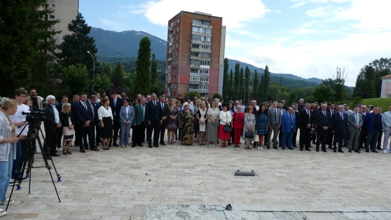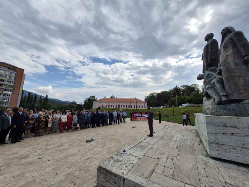 În bună parte, aceleași personalități au fost prezente și la scurta ceremonie care a avut loc în centrul municipiului Lupeni, în fața Ansamblului Monumental ”Lupeni 29” al artistului Ion Irimescu.