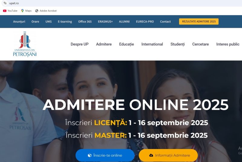 Un studiu care analizează activitatea site-urile oficiale ale celor 87 de universități acreditate din România, plasează Universitatea din Petroșani pe un onorant loc 10 la nivel național în ceea ce privește indexul de Optimizare Google/Bing al platformei sale digitale, situându-se îm zona verde a activității online din mediul universitar românesc.