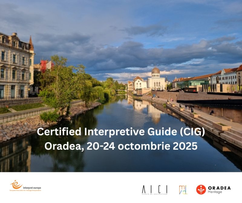 În perioada 20–24 octombrie 2025, Oradea va găzdui primul curs Certified Interpretive Guide (CIG) organizat în România, un program recunoscut la nivel internațional, certificat de Interpret Europe, una dintre cele mai importante organizații europene în domeniul interpretării patrimoniului.