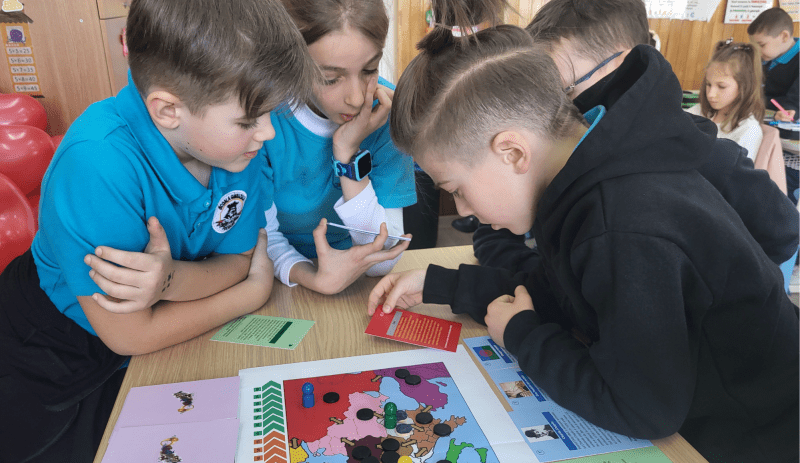 Pe lângă jocul de societate, kitul educațional distribuit către profesori include: