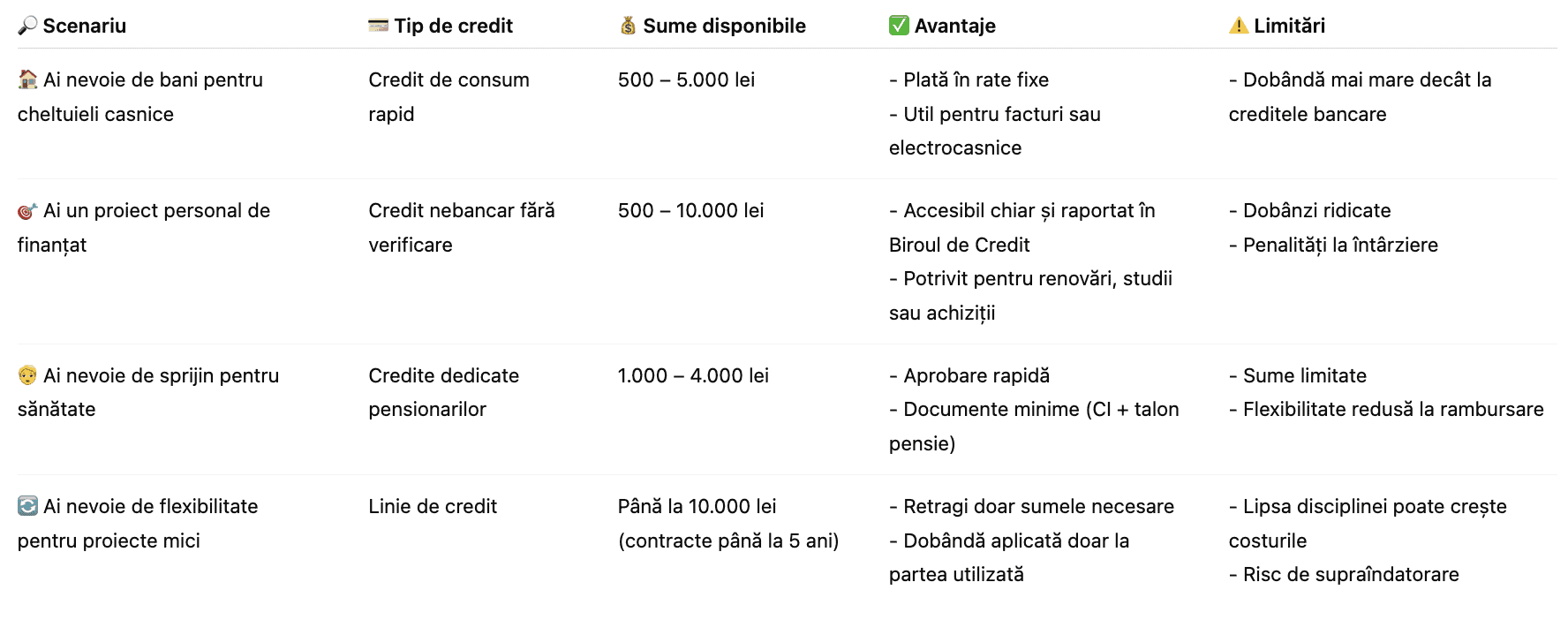 • Credit până la salariu – pentru urgențe pe termen scurt.