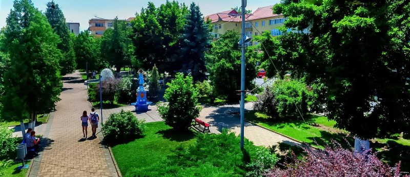 Cea mai amplă intervenție vizează Parcul Central (Parcul Unirii), care va fi reamenajat ca o piațetă urbană multifuncțională, adaptată atât evenimentelor publice, cât și momentelor de relaxare zilnică. Zona pietonală va fi extinsă, iar fântâna arteziană din centrul piațetei va deveni un punct de atracție distinctiv: ea va fi încastrată în paviment și realizată sub forma literei „H” stilizat, o trimitere subtilă la identitatea locală.