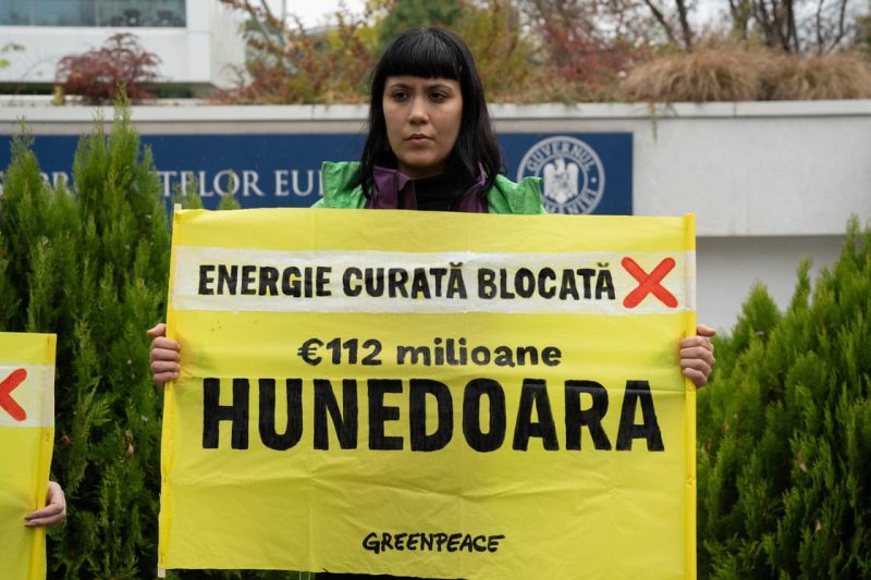 Activiștii Greenpeace au transmis astăzi, în fața Ministerului Investițiilor și Proiectelor Europene (MIPE), mesajul comunităților din regiunile de tranziție: „Fără comunități, tranziția e injustă! Lansați fondurile pentru energie regenerabilă!” Ei cer menținerea bugetului dedicat energiei verzi în Programul de Tranziție Justă (PTJ) și lansarea urgentă a celor două apeluri de proiecte – unul pentru administrațiile locale, altul pentru gospodării.