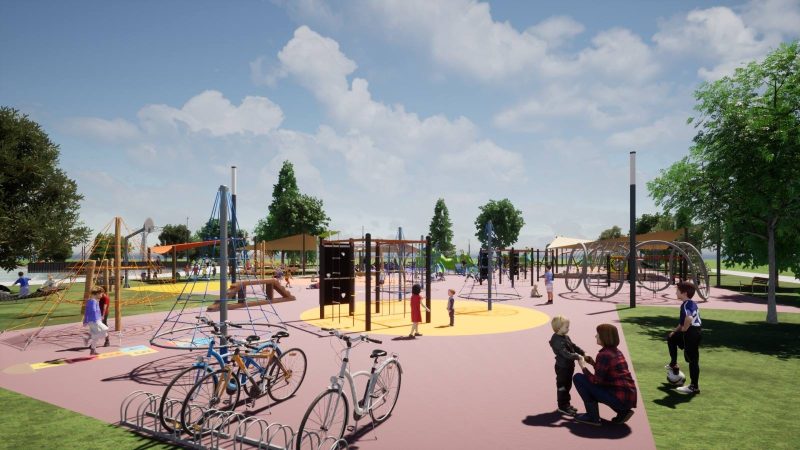 În partea de nord a arealului studiat vor fi amenajate terenuri de sport pentru fotbal, baschet și tenis, dotate cu gazon sintetic sau tartan, corpuri de iluminat nocturn, mobilier urban, rasteluri pentru biciclete și o clădire destinată grupurilor sanitare. Zona va beneficia și de o parcare modernă, situată în partea de sud, precum și de limitatoare de viteză pentru siguranța pietonilor.