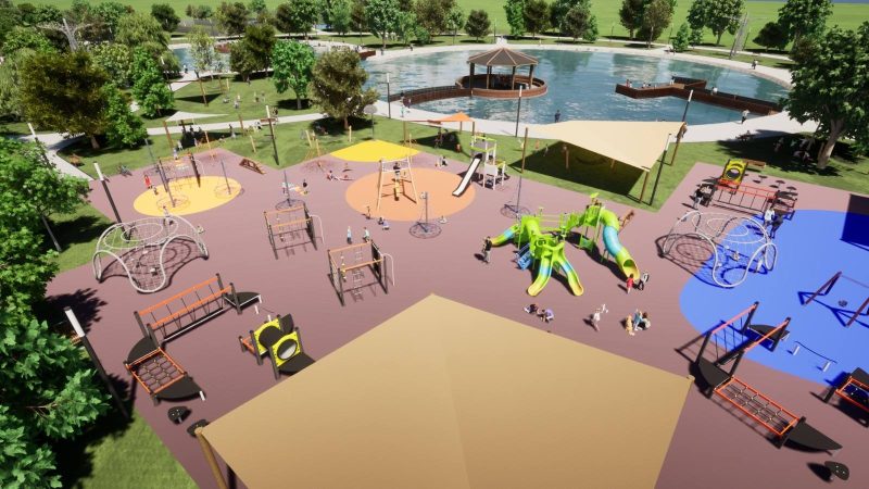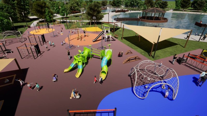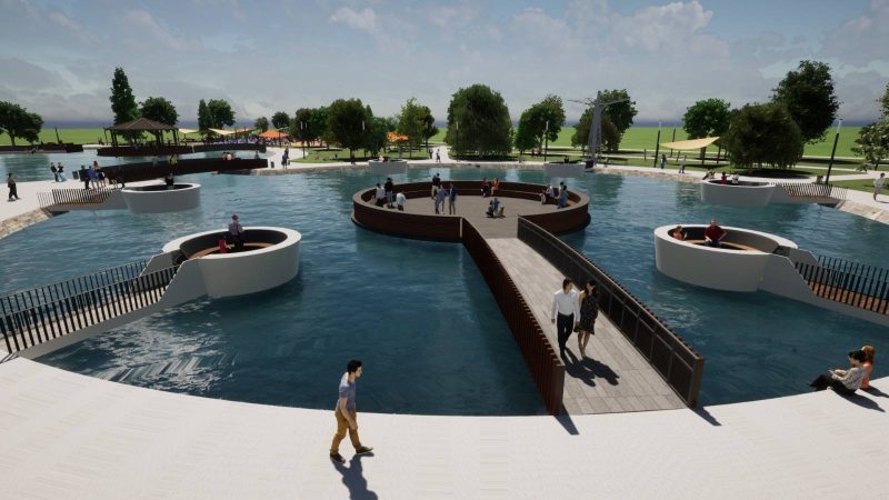 În zona de nord va fi amenajată o zonă cu lacuri artificiale, care va include un lac de aproximativ 6.100 mp, pontoane, foișoare amplasate pe apă, o pasarelă din lemn, loc de joacă pentru copii și zone de relaxare cu hamace și structuri pentru umbrire.