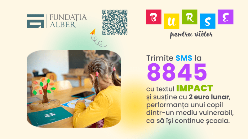 Pentru acești copii, Fundația Alber a creat programul „Burse pentru Viitor”, un sprijin care nu înseamnă doar resurse financiare, ci mai ales liniște pentru familie și încredere pentru elev. O bursă nu este doar o sumă de bani. Este un „da, poți!” spus unui copil care are nevoie să audă asta.