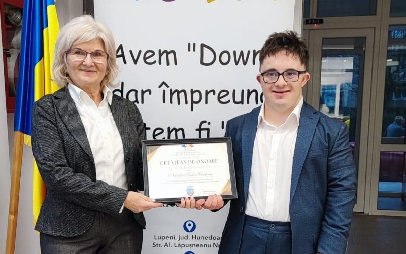 La eveniment a fost prezent și primarul municipiului Vulcan, Cristian Merișanu, la inițiativa căruia, unul dintre tinerii speciali din comunitatea constituită în jurul Asociației Down Valea Jiului, Tudor Cristian Nicolau a fost distins cu titlul de ”Cetățean de onoare al municipiului Vulcan”, pentru performanțele sale deosebite în domeniuo sportiv, acesta fiind multiplu laureat al jocurilor sportive „Special Olympics” la nivel național și internațional, la schi alpin, natație și baschet.