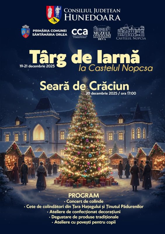 Redat de curând circuitului turistic și cultural, Castelul Nopcsa din satul Săcel devine, timp de trei zile, în preajma sărbătorilor de iarnă, cel mai fermecător loc din Țara Hațegului! Consiliul județean Hunedoara, Muzeul Civilizației Dacice și Romane și Centrul de Cultură și Artă al județului Hunedoara vor organiza aici, în perioada 19-21 decembrie 2025, „Târgul de Iarnă”, un eveniment plin de magie, tradiție și bucurie pentru întreaga familie.