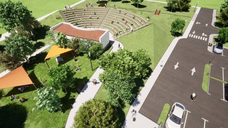 Amenajarea unui AMFITEATRU IN AER LIBER, în zona sud-vestică a arealului studiat, cu :