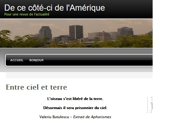 Creațiile aforistice ale lui Valeriu Butulescu se bucură, în continuare, de interes și apreciere pe tot cuprinsul Pământului. De peste Ocean, din Canada, vin câteva elegante considerații semnate de Ludewic Mac Kwin De Davy, pe care le consemnăm, în traducere, pentru cititorii noștri.