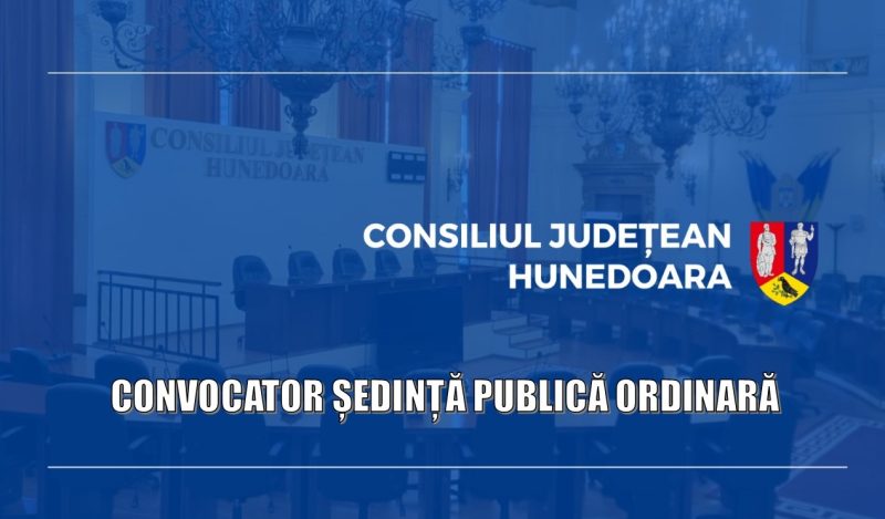 Consiliul Județean Hunedoara, este convocat în ședință ordinară, care se va desfășura în data de 27 februarie 2026, ora 11,00, în sala de ședințe din sediul Consiliului Județean Hunedoara, situat în municipiul Deva, str. 1 Decembrie, nr.28, județul Hunedoara, cu următoarea ordine de zi: