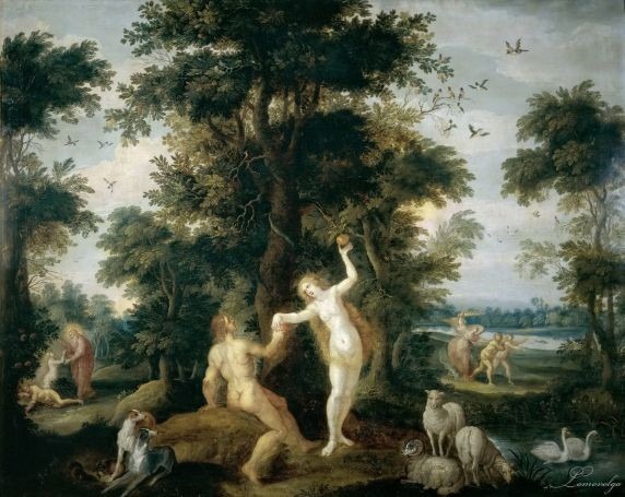 Eva vede că pomul este frumos, că rodul pare bun. Ia și mănâncă. Apoi îi dă și lui Adam.
