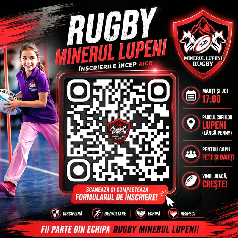 Momentul formării primului lor de jucători ai nou-înființatului Rugby Club (RC) Minerul Lupeni va fi matrcat printr-o festivitate care va avea loc loc joi, 23 aprilie, începând cu ora 17, în Parcul Copiilor de la Bărbateni. Aici sunt invitați să vină toți copiii (fete și băieți) care doresc să descopere magia balonului oval și să facă parte din acest proiect care reînvie tradiția sportului cu balonul oval la Lupeni. Părinții sunt încurajați să fie alături de micii viitori campioni, oferindu-le sprijinul necesar în această nouă aventură sportivă în care totul este gratuit.